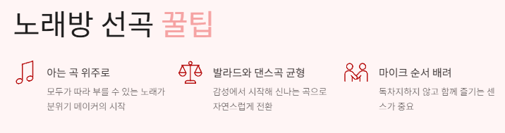 노래방은 단순히 노래를 부르는 공간이 아니라 작은 무대와 같습니다. 이 점을 기억하면 노래를 부를 때 접근 방식이 달라집니다. 많은 사람들이 노래를 잘 부르기 위해 음정을 정확하게 맞추는 것에만 집중하지만, 실제로 듣는 사람들에게 가장 크게 다가오는 요소는 자신감 있는 태도와 표현력입니다. 음정이 조금 흔들리더라도 자신감 있게 부르는 사람에게 자연스럽게 시선이 가고, 분위기 전체가 살아납니다.
