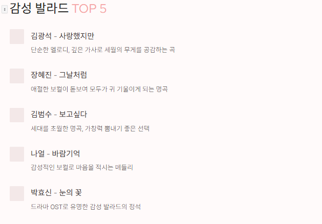 - 감성 발라드 추천 10곡 – 40대 노래방 인기곡